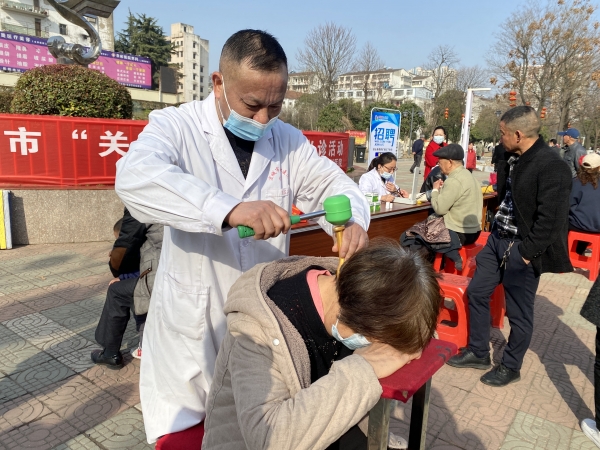 在廣場(chǎng)正在打太極拳的李木香,今年60歲,看到廣場(chǎng)有義診活動(dòng),打完太極拳后也前來體驗(yàn),“今天三八婦女節(jié),我一直頸椎疼,在這感受了下,確實(shí)頸椎舒服了,眼睛亮了。”