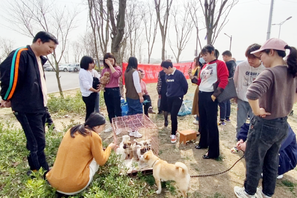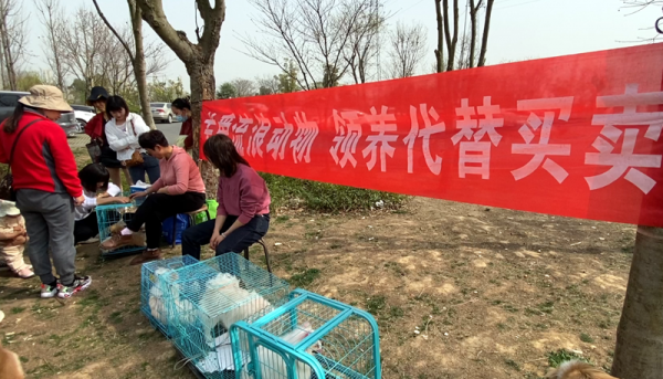 3月15日下午,在楚都公園,愛心志愿者們將“關(guān)愛流浪動物領(lǐng)養(yǎng)代替買賣”的橫幅掛了起來,許多市民朋友聚集在活動現(xiàn)場,與流浪狗零距離接觸。