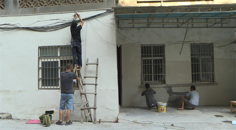 8月11日,記者走進(jìn)司法局家屬院看見,工人們有的正在粉刷墻面、有的正在施劃畫停車位、有的正在捆扎線路……一片繁忙景象。
