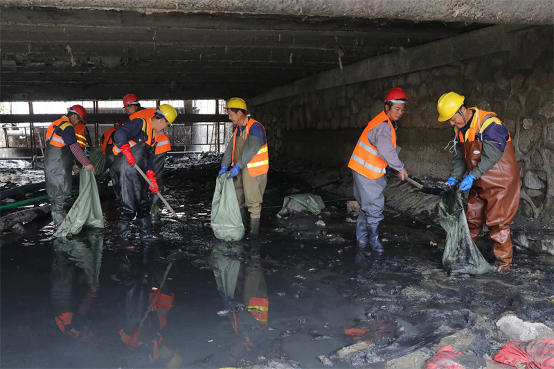 暗溝清淤勞務(wù)負(fù)責(zé)人譚錫國說:"為了減少淤泥對路面再污染,首先人工打撈上面的漂浮物,然后再進(jìn)行高壓水槍把淤泥全部稀釋,用高壓輸送泵輸送到固化廠,剩下的建筑垃圾采用機(jī)械和人工進(jìn)行清理轉(zhuǎn)運(yùn)。"