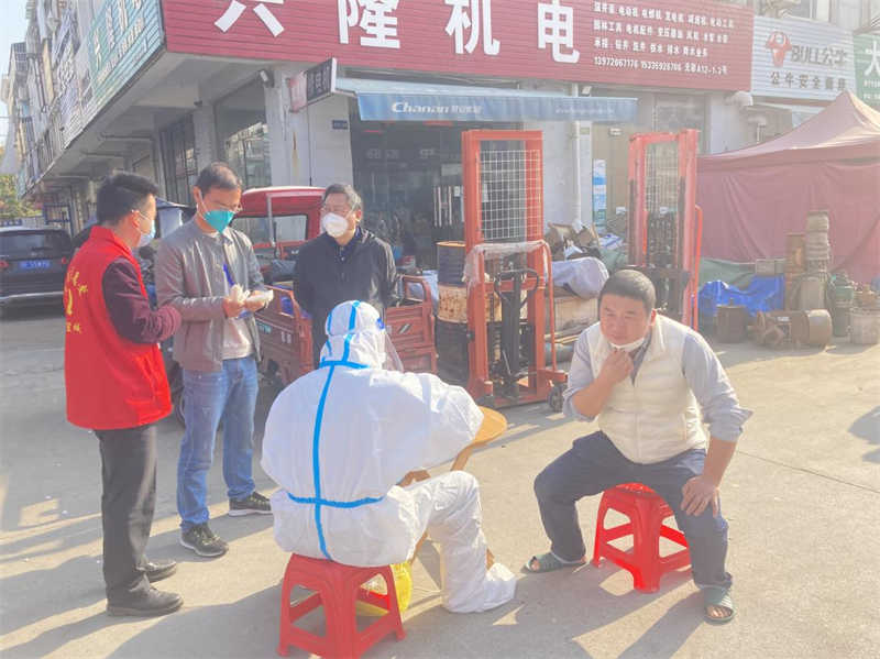 干部股股長(zhǎng)胡萬(wàn)建和趙靜連續(xù)6天輾轉(zhuǎn)于多個(gè)社區(qū)間巡查督導(dǎo),編辦李凱也主動(dòng)請(qǐng)纓到居民人數(shù)眾多、防守力量相對(duì)薄弱的錦苑小區(qū)蹲點(diǎn)駐守,流轉(zhuǎn)在各個(gè)核酸檢測(cè)點(diǎn)位,安排調(diào)配物資、協(xié)調(diào)補(bǔ)充人員力量、維持現(xiàn)場(chǎng)秩序。
