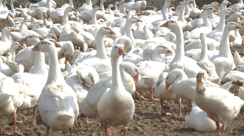 “去年的一天,白天還是晴空萬里,晚上卻突然狂風大作,把我們150多平方米的養(yǎng)鵝棚給刮塌了,當天晚上損失了2000多只鵝,就感覺心里特別難受,但是再難也要扛過去!