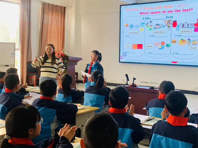 4位年輕教師通過同課異構(gòu)《G5B6 Unit2 My favourite season Part》,對文本進行深入研讀,結(jié)合學(xué)生的主體需求,搭建起一個由單元主題統(tǒng)領(lǐng)、內(nèi)容相互關(guān)聯(lián)、邏輯清晰的完整的教學(xué)單元,通過聽、說、讀、看、演等方式,引導(dǎo)學(xué)生了解與表達四季之不同,發(fā)現(xiàn)四季之可愛,將知識點串成線、連成片、織成網(wǎng),從而引導(dǎo)學(xué)生圍繞主題,建立起系統(tǒng)的認知結(jié)構(gòu)。