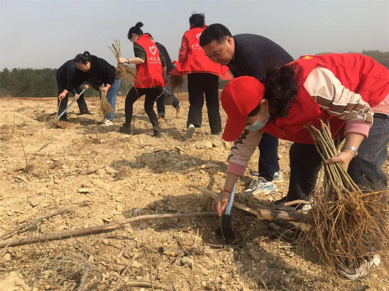 活動現(xiàn)場,大家分工合作、揮鍬鏟土、扶苗培土、挖土填坑、提水澆灌,做到每一個環(huán)節(jié)都有效銜接,每一道工序都細(xì)致認(rèn)真,確保種下去的每一株樹苗都能夠穩(wěn)穩(wěn)地在這片土地上“安家落戶”。經(jīng)過一番忙碌,1000余棵新栽種的桑樹苗整齊排列,在三月的春風(fēng)里散發(fā)著勃勃生機(jī)。