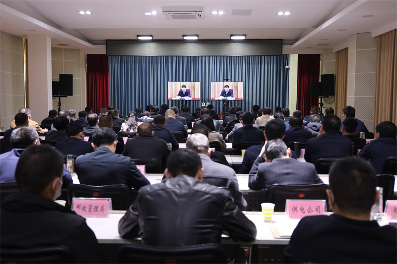 市領(lǐng)導(dǎo)肖平、李曙東、周斌在宜城分會(huì)場(chǎng)參加會(huì)議。