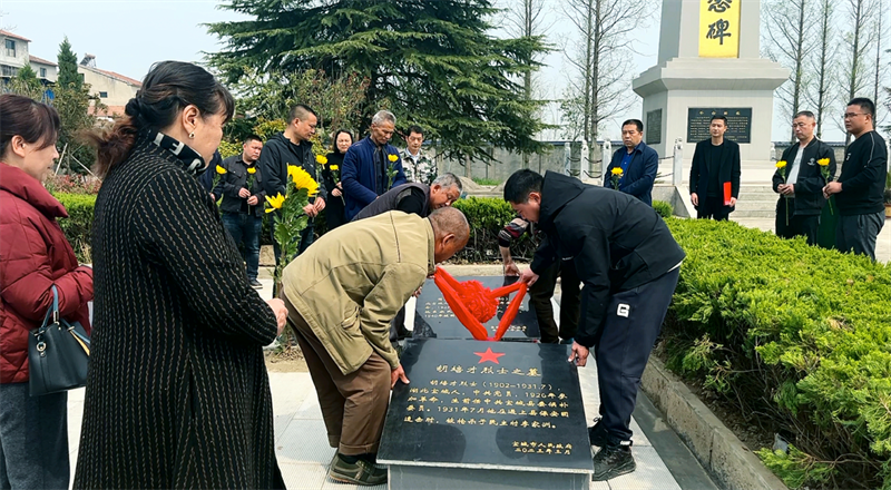 現(xiàn)場全體人員懷著無比崇敬的心情向英勇獻(xiàn)身的革命烈士三鞠躬、深切緬懷革命先烈豐功偉績。