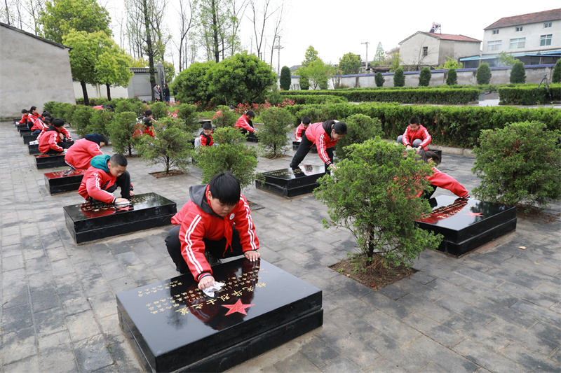 在位于小河鎮(zhèn)的“四六”烈士陵園,當(dāng)?shù)劓?zhèn)村干部、中小學(xué)生和退役軍人,懷著對(duì)革命烈士的崇高敬意,共同對(duì)陵園進(jìn)行整理與祭掃。在紀(jì)念碑前,老黨員楊才維向大家講述了宜城平息“四六暴動(dòng)”的革命故事,引導(dǎo)青年一代銘記革命歷史,緬懷烈士功績,傳承紅色基因,為實(shí)現(xiàn)中華民族偉大復(fù)興的中國夢而不懈奮斗。