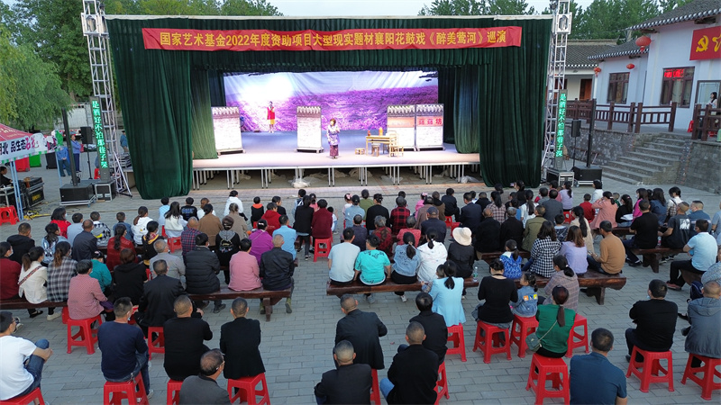 本網(wǎng)訊記者向杰廷 通訊員王金波 余愛民報道:5月1日晚,華燈初上,夜色闌珊,國家藝術基金資助項目大型現(xiàn)實題材襄陽花鼓戲《醉美鶯河》到流水鎮(zhèn)鶯河村巡演,助力該村五一小長假鄉(xiāng)村游。