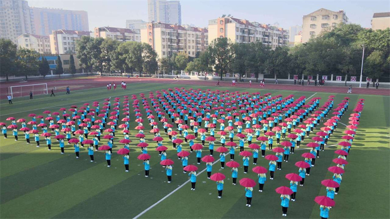 宋玉中學(xué)還表演了團(tuán)體操《燈火里的中國(guó)》、啦啦操《加油!加油!》。