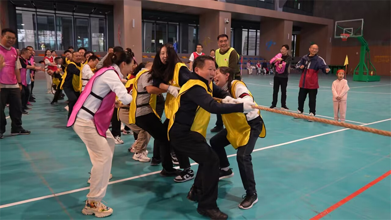 開幕式上,各代表隊(duì)有序入場(chǎng),大家精神飽滿、斗志昂揚(yáng),在經(jīng)過(guò)簡(jiǎn)短熱身運(yùn)動(dòng)后,迅速投入到比賽中。本次賽事設(shè)有一圈到底、毛毛蟲競(jìng)速、螃蟹暴走、穿針引線、牽手接力、兩人三足、拔河比賽等7個(gè)項(xiàng)目。項(xiàng)目集趣味性、娛樂(lè)性、協(xié)作性和競(jìng)技性于一體,既有力量上的角逐,又有智慧上的較量,更有團(tuán)隊(duì)配合默契度上的比拼。