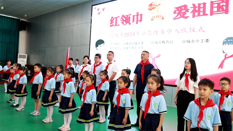 本網訊記者周波 通訊員董江宇 鐘凌冉報道:5月30 日,由共青團宜城市委、宜城市教育局主辦的宜城市 2024年少先隊示范性集中入隊儀式在宋玉小學舉行,近200名師生代表共同見證了這一激動人心的時刻。