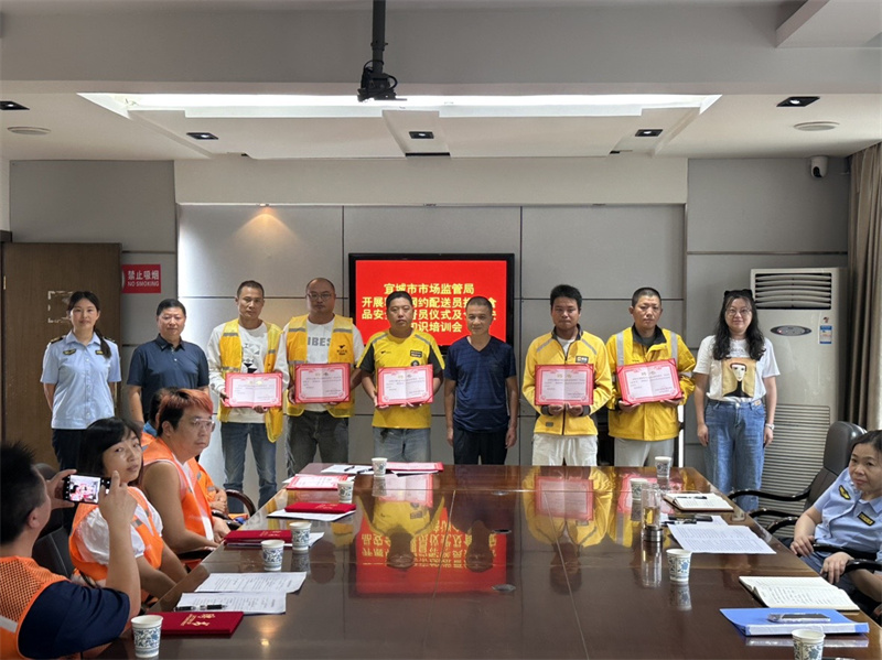 隨著網(wǎng)絡(luò)餐飲經(jīng)濟(jì)迅猛發(fā)展,外賣已成為市民日常生活的重要組成部分。但由于外賣制作過程相對封閉,食品安全監(jiān)管一直面臨挑戰(zhàn)。為破解這一難題,宜城市市場監(jiān)管局積極探索社會共治新機(jī)制,將日常穿梭于各類餐飲場所、直接參與食品流轉(zhuǎn)的網(wǎng)約配送員納入監(jiān)督體系,經(jīng)嚴(yán)格遴選,首批10名配送員正式受聘,并參加了專題培訓(xùn)暨聘任儀式。