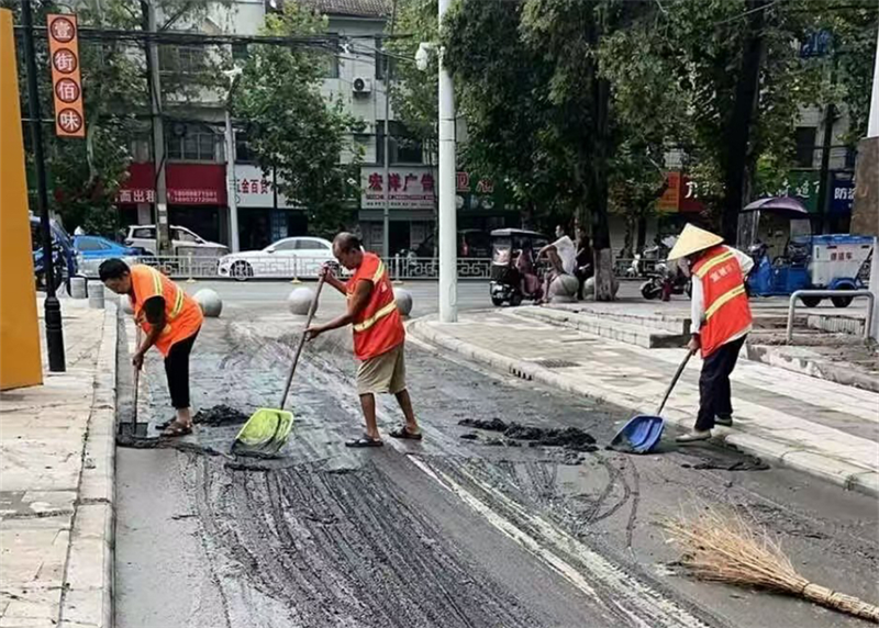 清理過程中,環(huán)衛(wèi)工人發(fā)揚(yáng)“不怕臟、不怕累”的奉獻(xiàn)精神,采取“人機(jī)結(jié)合”的作業(yè)方式,利用掃帚、鐵鍬等工具,全面清除路面淤泥與雜物,有效保障道路通暢和環(huán)境整潔。