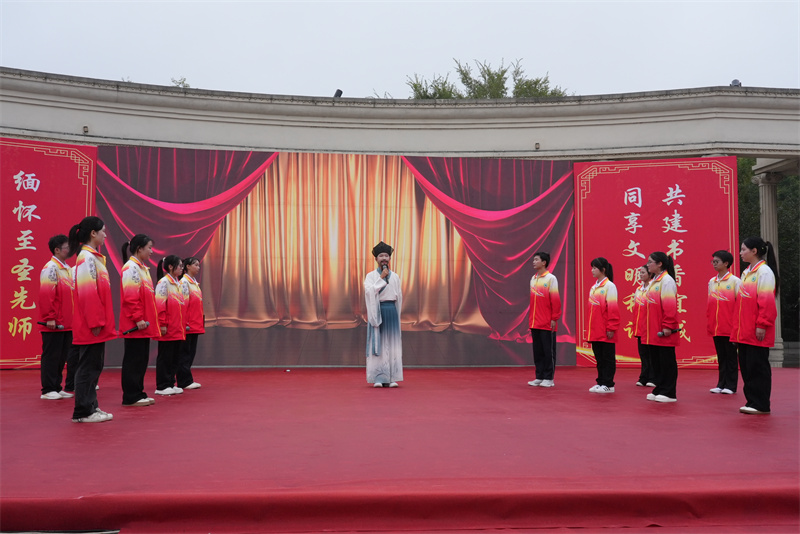 啟動儀式后,現(xiàn)場舉行精彩的文化展演。南街小學呈現(xiàn)莊重的開筆禮《一筆一世界 一書一未來》,實驗小學帶來誦唱表演《與孔子相約 對話論語》,市二中師生演繹情景劇《時空問志》,市稅務局獻上詩朗誦《稅韻儒風 國泰民安》,湖北交投襄陽高速公路運營管理有限公司表演情景劇《尋道先賢》,這些節(jié)目從不同角度詮釋經(jīng)典文化的時代價值,贏得觀眾陣陣掌聲。