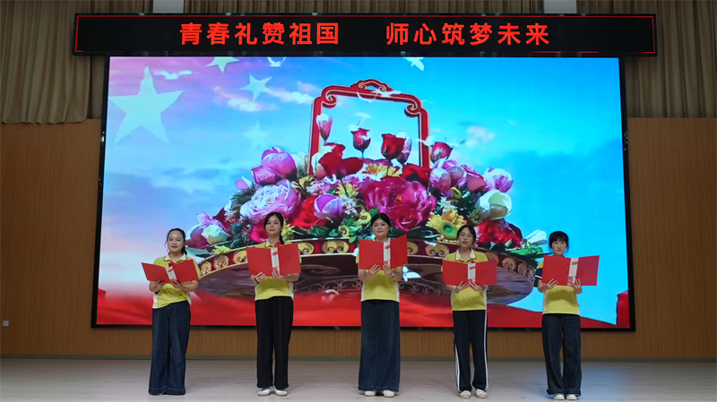 才藝展示環(huán)節(jié),青年教師們以一場活力四射的現(xiàn)代舞《日不落》點燃全場,他們用整齊的動作、飽滿的熱情,詮釋著“強國有我”的青春誓言;詩歌朗誦《這盛世如您所愿》《我用星光把祖國點亮》,表達對祖國的款款深情和祝福,字里行間滿是對祖國發(fā)展的自豪;非洲鼓《玉盤》以孩童視角對探索宇宙奧秘的憧憬與贊美,歌頌實現(xiàn)了“九天攬月”的飛天夢想。故事表演、新疆舞、傣族舞、古典舞……精彩紛呈,充分展示青年教師的風(fēng)采。