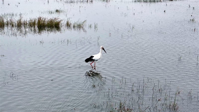 “這只東方白鸛在上空盤旋了幾圈后就落地了,然后邁著大長腿在濕地淺水區(qū)輕盈踱步,不時(shí)垂首覓食!币顺侨f洋洲國家濕地公園管理處工作人員毛祥說,“今年是連續(xù)第二年拍攝到東方白鸛的身影,這也是繼中華秋沙鴨、黑鸛、青頭潛鴨之后,在濕地公園發(fā)現(xiàn)的第四種國家一級(jí)重點(diǎn)保護(hù)野生動(dòng)物。東方白鸛夏天在北方活動(dòng),每年十月到第二年三月會(huì)飛到南方過冬。宜城有良好棲息環(huán)境和充足的食物,所以東方白鸛在經(jīng)過時(shí)就留了下來!