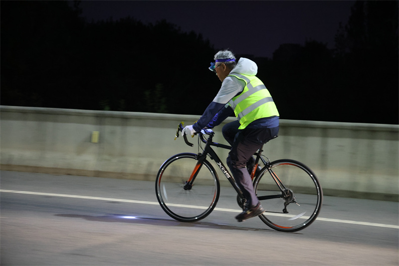 丈量過(guò)程中,袁林首先完成300米標(biāo)定路線的多輪騎行測(cè)試,隨后開(kāi)始賽道路線騎行。每騎行1公里,便停下車與工作人員一同使用油漆對(duì)測(cè)量點(diǎn)進(jìn)行標(biāo)記,并仔細(xì)核對(duì)數(shù)據(jù)、定點(diǎn)標(biāo)記、拍照存檔,為后續(xù)設(shè)置計(jì)時(shí)點(diǎn)、補(bǔ)給點(diǎn)、醫(yī)療點(diǎn)提供精準(zhǔn)依據(jù)。