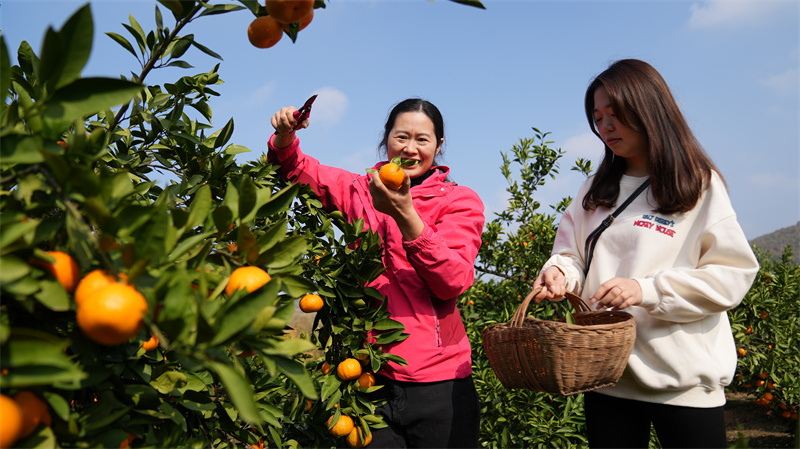 同行的采摘游客許曉輝正忙著品嘗桔子,“你看這桔子又大,看著就好吃!