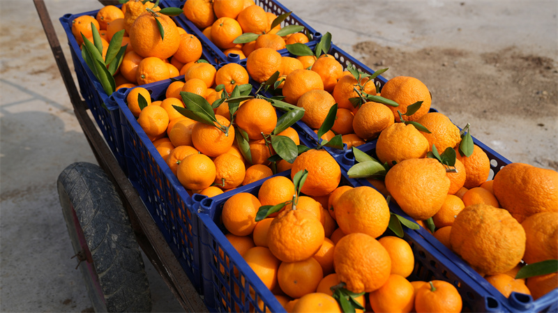 “今年我種的1500顆柑桔樹品種是‘國慶系列’和‘尾樟系列’”,黃海林說,“我們這的山地適應種柑桔,種出來的柑桔口感酸甜,以甜為主,目前已經(jīng)豐收了!
