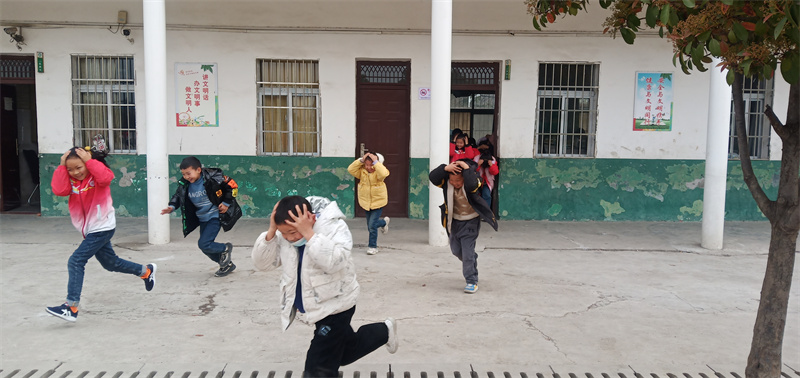 鄢城街道白廟小學:防震演練 安全"童"行