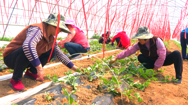 在湖北京瑞通達(dá)公司另一個(gè)大棚基地,工人們正在忙碌,有的在為西瓜苗摸芽,有的在為西瓜瓜蔓吊繩,進(jìn)行田間管理。"我們這個(gè)禮品瓜5月10號(hào)就可以上市,這個(gè)瓜早熟,比一般西瓜上市期提前20多天,"基地負(fù)責(zé)人張洪祥說,"這個(gè)禮品瓜產(chǎn)量不錯(cuò),因錯(cuò)時(shí)銷售也可以賣個(gè)好價(jià)格,每畝地大約可以收入2萬元。"