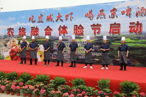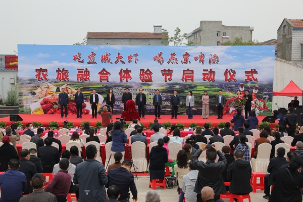 市領導武義泉、陳進雷、李源等一起按下啟動球,正式啟動“吃宜城大蝦 喝燕京啤酒”農旅融合體驗節(jié)。