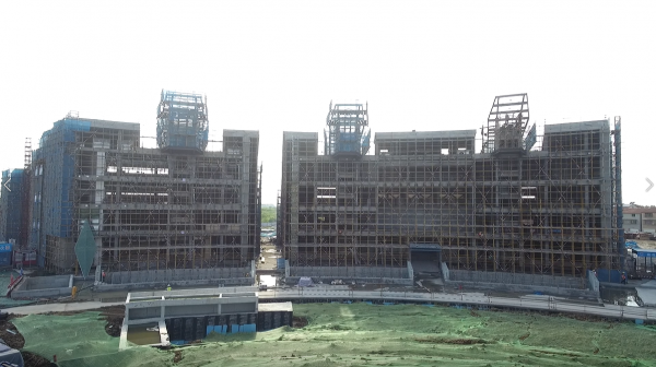 為加快推進項目建設,項目建設者們放棄"五一"假期休息,組織人員加班加點,積極搶占當下施工的黃金季節(jié),力爭讓"四館兩中心"這一城市新地標早日建成投入使用。據(jù)施工單位項目經(jīng)理李黎介紹,項目主體已封頂,正在進行室內(nèi)精裝修和外立面幕墻施工,目前已完成總工程量的60%,預計將在2023年的4月份全面竣工并投入使用。