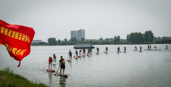 此次交流賽設置了2個比賽項目,分別是友誼賽和抖板賽,上午10點,交流賽正式開始,大家進行了賽前熱身,在美麗的鯉魚湖,槳板運動愛好者們備足裝備拎板劃入湖中,借著湖水,劃槳沖浪,在平靜的水面上劃出美麗的弧線,吸引不少市民駐足觀看。