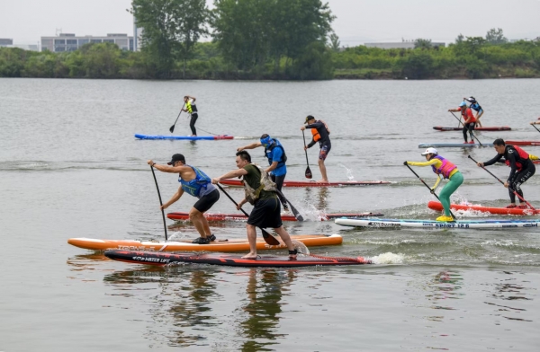 本網訊記者劉妙然報道:5月15日,宜城市舉行首屆槳板水上運動交流賽,來自襄陽、荊門、荊州近50名選手齊聚鯉魚湖,現場交流切磋,展現了槳板運動的活力與激情。