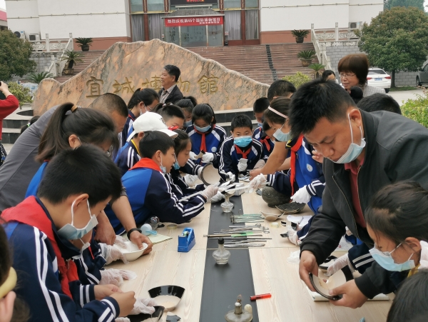 活動(dòng)中,孩子們?cè)谥v解員的帶領(lǐng)和講解下,參觀了"楚國(guó)車(chē)馬坑""楚風(fēng)漢韻"等板塊的陶瓷器、玉器等珍貴文物。大家一邊認(rèn)真聽(tīng)著講解員講解宜城的歷史、人文、科技、民俗等知識(shí)和典故,一邊記錄著自己感興趣的內(nèi)容。隨后大家來(lái)到文物修復(fù)室,聽(tīng)文物修復(fù)大師易澤林講解修復(fù)文物的故事,并親手體驗(yàn)了"文物修復(fù)"。