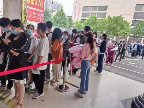 當(dāng)天早上7點(diǎn),就有很多年輕人來政務(wù)服務(wù)大廳門前排隊(duì)等候,“選擇5.20結(jié)婚,以示愛意永恒、幸福美滿,很有紀(jì)念意義”,新人李先生、王女士高興地說。