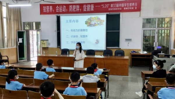 活動中,市疾控中心講師以《知營養(yǎng) 促健康》為題,用風趣幽默的語言為學生們帶來一堂生動的"營養(yǎng)教育"課,并以圖片的形式向學生們講解均衡營養(yǎng)的重要性,普及"什么是營養(yǎng)""怎樣科學攝取營養(yǎng)""如何合理飲食"等相關知識。她還通過有趣的互動游戲,與學生們一起探討健康飲食習慣。學生們踴躍發(fā)言、積極互動,現場氣氛十分活躍。