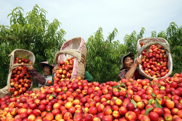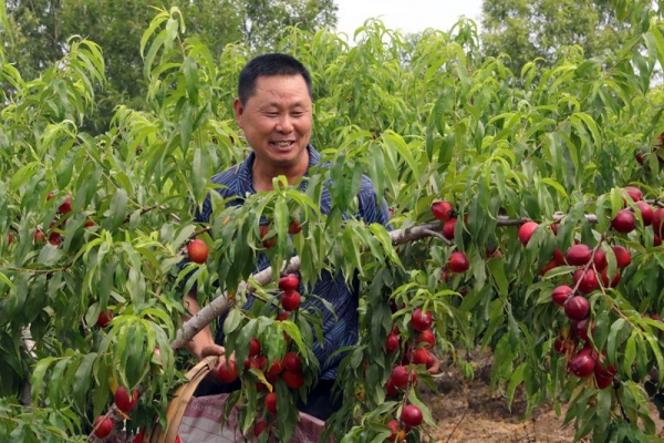 當(dāng)天一大早,果農(nóng)沈德付就來到果園,組織六七名工人采摘油桃?粗奖橐暗募t彤彤的油桃,他十分高興,“今年50畝油桃都已進入盛果期,產(chǎn)量不錯,目前已賣了12萬元,預(yù)計今年純收入能達25萬元。”