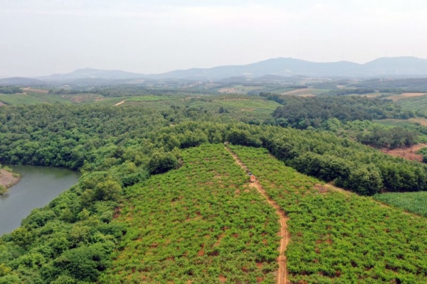 近年來,黃崗村堅持“綠水青山就是金山銀山”的發(fā)展理念,充分利用該村丘陵崗地多的特點,引導(dǎo)村民發(fā)展林果業(yè)。目前該村林果種植面積已達6000多畝,其中桃子4000多畝。同時還修建田間作業(yè)道,建設(shè)水果交易市場和凍庫,讓黃崗桃子運得出、銷得遠。