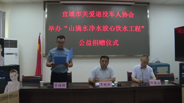 深圳市菲麗特凈水設(shè)備有限公司共為宜城市人武部、退役軍人事務(wù)局、退役軍人服務(wù)中心、11個(gè)鎮(zhèn)(辦)退役軍人服務(wù)站、234個(gè)村(社區(qū))退役軍人服務(wù)站捐贈凈水機(jī)和茶吧機(jī)265臺,價(jià)值50多萬元。