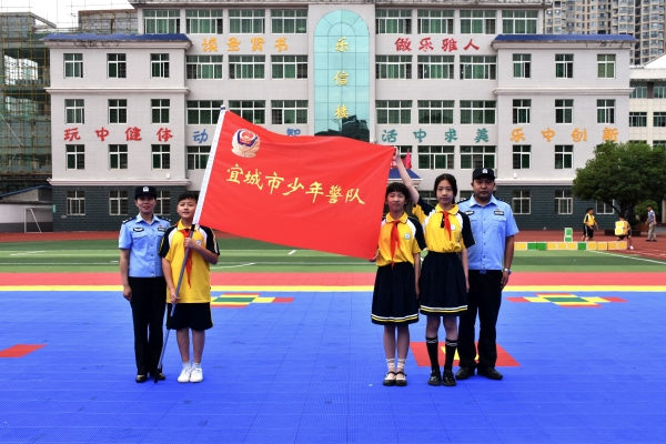 活動(dòng)現(xiàn)場(chǎng),560名學(xué)生列隊(duì)整齊,朝氣蓬勃。伴隨著嘹亮的國(guó)歌,五星紅旗冉冉升起,授旗儀式拉開序幕;顒(dòng)中,民警宣讀了"塑心+立行"少警工程實(shí)施方案,勉勵(lì)他們好好學(xué)習(xí),爭(zhēng)做新時(shí)代好少年。隨后,學(xué)生代表踏著矯健的步伐,從民警手中接過印有"宜城市少年警隊(duì)"的隊(duì)旗,現(xiàn)場(chǎng)掌聲雷動(dòng),實(shí)驗(yàn)小學(xué)"少年警隊(duì)"正式成立。