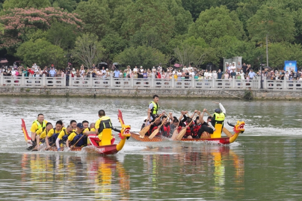 精彩激烈的龍舟比賽吸引了眾多市民和游客前來觀看,一時間,歡呼聲、擂鼓聲、劃槳聲,此起彼伏。