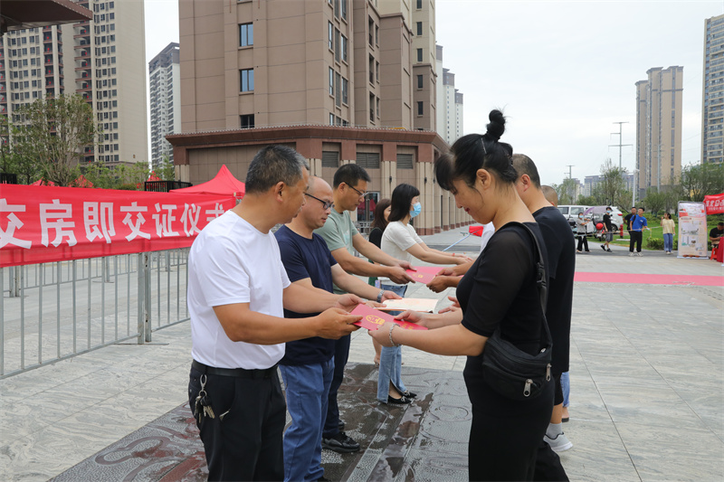瀾岸世家項(xiàng)目銷售負(fù)責(zé)人黃宏鵬介紹:“瀾岸世家是2019年11月開工的,2021年12月23日取得竣工備案證,原定于2022年12月30日交房,現(xiàn)提前半年實(shí)現(xiàn)1076套住房交房即辦證,盡顯國(guó)企擔(dān)當(dāng),成為宜城第一個(gè)交房即辦證項(xiàng)目!
