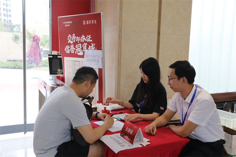 當(dāng)天,瀾岸世家項(xiàng)目交付現(xiàn)場(chǎng)人潮涌動(dòng),業(yè)主們結(jié)算后拿鑰匙,提交資料,繳稅,待審核完成后即可領(lǐng)取不動(dòng)產(chǎn)權(quán)證。