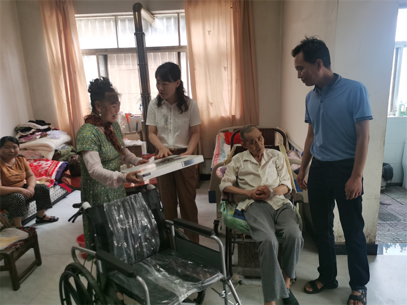 汪高峰 王彬彬報(bào)道:7月26日,"八一"前夕,宜城市退役軍人事務(wù)局、市殘聯(lián)相關(guān)負(fù)責(zé)人來到柳幫生、楊修杰兩位傷殘老兵家中,為他們送上輪椅、拐杖等康復(fù)輔助器具,向他們致以節(jié)日的祝福和親切的問候。