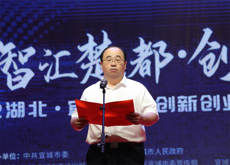 市委書記武義泉致辭。武義泉指出,近年來,宜城緊緊圍繞經(jīng)濟(jì)社會高質(zhì)量發(fā)展需求,全面深化人才發(fā)展體制機(jī)制改革,大力推動人才政策和制度創(chuàng)新,廣開進(jìn)賢之路,實(shí)現(xiàn)了經(jīng)濟(jì)社會發(fā)展與人才發(fā)展的有機(jī)融合、相得益彰。全市16家“雙創(chuàng)”平臺共孵化企業(yè)265家,吸引了8100多人就業(yè)創(chuàng)業(yè),年創(chuàng)造產(chǎn)值達(dá)5億多元,連續(xù)九年獲評全省縣域經(jīng)濟(jì)發(fā)展先進(jìn)縣(市),六次入榜全國投資潛力百強(qiáng)縣(市),入選全國青年發(fā)展型縣域試點(diǎn)。