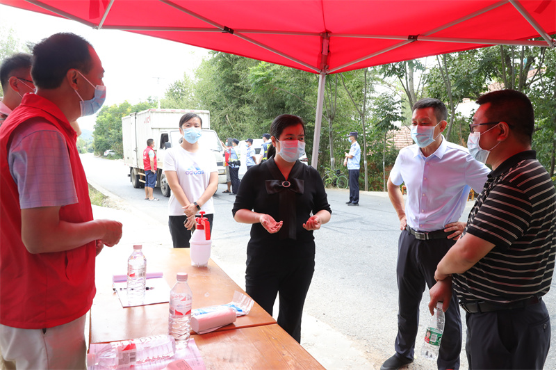 在界山疫情防控值守點(diǎn),肖平親切看望了堅(jiān)守在防疫一線的黨員干部和公安干警,向他們致以誠(chéng)摯的問(wèn)候,對(duì)大家的辛勤付出表示衷心的感謝,叮囑他們做好防暑降溫,注意自身防護(hù)。肖平還認(rèn)真聽(tīng)取疫情防控情況介紹,詳細(xì)了解過(guò)往車輛及人員排查、信息登記、核酸檢測(cè)查驗(yàn)等防控措施落實(shí)情況,要求深刻認(rèn)識(shí)疫情防控的嚴(yán)峻性,克服麻痹思想、僥幸心理,原則性和靈活性相結(jié)合,扎實(shí)做好"外防輸入"工作,嚴(yán)把入口關(guān),仔細(xì)查驗(yàn)健康碼、行程卡及規(guī)定時(shí)間內(nèi)的核酸檢測(cè)陰性證明,落細(xì)落實(shí)防控措施,織密人民群眾健康安全防線。
