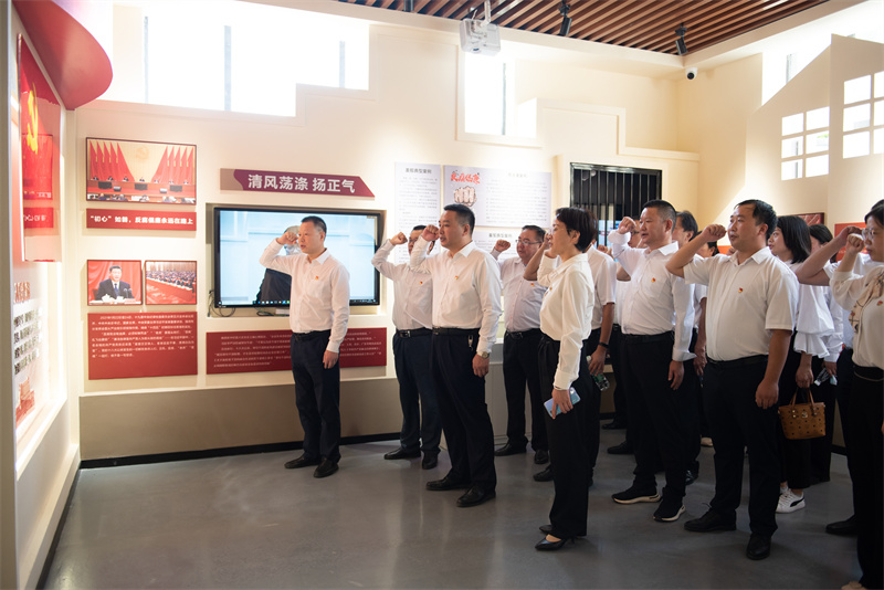 在楚都家風(fēng)展陳館,黨員們仔細觀看了先賢家風(fēng)、紅色家風(fēng)、時代家風(fēng)等主題展陳,瀏覽了古代先賢、黨和國家領(lǐng)導(dǎo)人、時代楷模的家風(fēng)家教故事,深切感受到他們以廉為榮、敬業(yè)奉獻的高潔品格。"莫伸手,伸手必被捉""雷霆之勢,正風(fēng)肅紀"……廉潔文化展陳廳生動形象的情景互動,讓黨員干部們在好奇之余,進一步繃緊廉潔之弦,做到知敬畏、存戒懼、守底線。