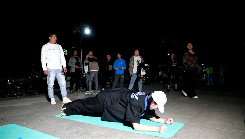 9月24日晚,正值人們休閑散步的高峰,在楚都公園小廣場,正在舉行的平板支撐和俯臥撐挑戰(zhàn)賽,吸引到眾多過往行人駐足觀看并加入挑戰(zhàn),上演了一場美女PK肌肉男的精彩對(duì)決。