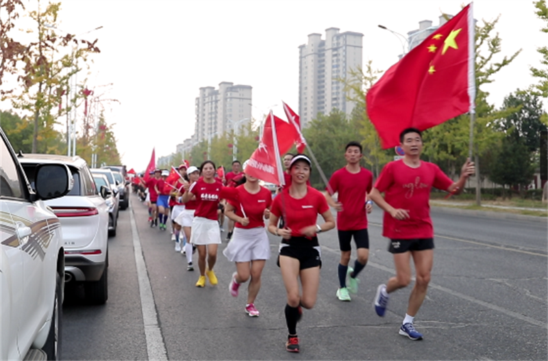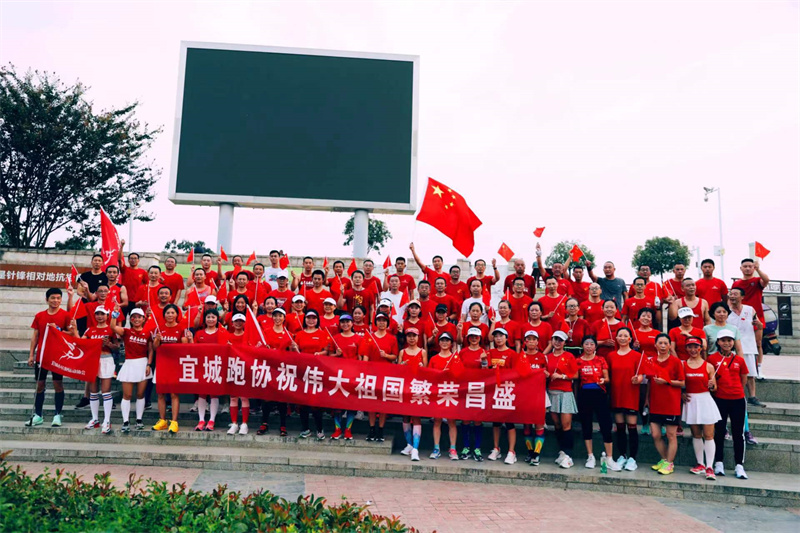 本網訊記者鐘軍報道:10月1日凌晨6時,宜城市長跑協會100多名長跑愛好者,齊聚紫陽觀小廣場,排著整齊的隊伍,舉著五星紅旗,迎著朝陽,以長跑運動健康跑的方式慶祝國慶佳節(jié)。
