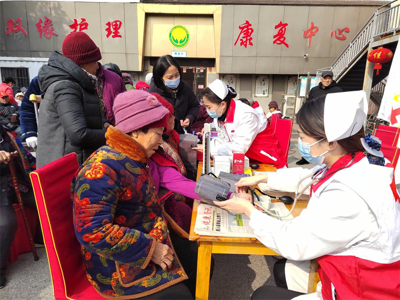 在雙緣養(yǎng)老院里,余彬醫(yī)院志愿者有序忙碌,有條不紊地為老人們測量血壓、心率,針對老人們的身體狀況,給予相應的治療、保健建議和專業(yè)的用藥指導,并為老人們耐心講解養(yǎng)生保健、預防疾病等健康知識。