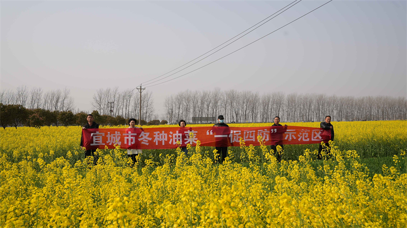 在技術(shù)人員的操控下,植保無人機(jī)按照預(yù)先設(shè)定路線,精準(zhǔn)有序開展施藥作業(yè),為千畝油菜披上了一件健康"外衣"。