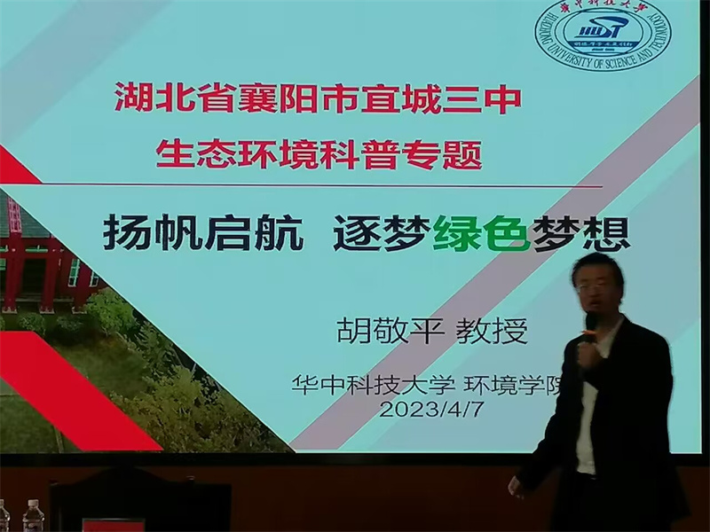 華中科技大學(xué)環(huán)境科學(xué)與工程學(xué)院胡敬平教授以“揚(yáng)帆起航  筑夢綠色夢想”為主題,開展科普講座。中國科學(xué)院武漢植物園操瑜博士以“水生植物的故事”為主題,開展科普講座。兩名專家教授的講座,不僅激發(fā)了同學(xué)們對未來環(huán)境與生物的探索與思考,而且提高了同學(xué)們保護(hù)環(huán)境意識。