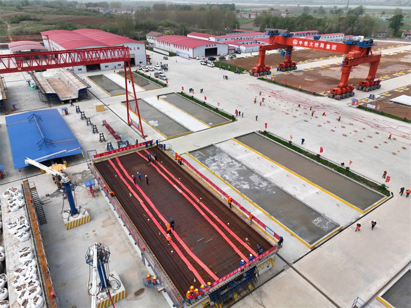 為做好首片32米預(yù)制箱梁的澆筑工作,自王集制梁場(chǎng)開工建設(shè)以來,施工方嚴(yán)格按照設(shè)計(jì)要求,科學(xué)組織鋼筋加工、綁扎安裝,模板安裝、梁體澆筑等工序施工,確保首片梁安全優(yōu)質(zhì)澆筑。在澆筑施工前,梁場(chǎng)對(duì)現(xiàn)場(chǎng)管理、技術(shù)、施工人員進(jìn)行了多次澆筑培訓(xùn),認(rèn)真進(jìn)行技術(shù)交底工作,嚴(yán)格規(guī)范相關(guān)操作,為后續(xù)487孔箱梁的大規(guī)模施工生產(chǎn)奠定了堅(jiān)實(shí)基礎(chǔ)。