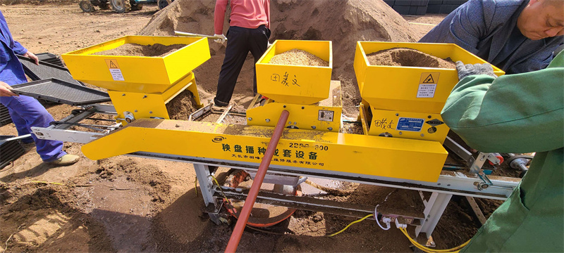 在田茂文的育秧基地,一臺近3米長的全自動水稻育秧機生產(chǎn)線正在忙碌。鋪盤、覆底土、灑水、播種、覆蓋土……育秧機快速運作,秧苗盤迅速形成。幾個人分工合作,僅用了短短一個小時,就把數(shù)百個秧盤播種好、整理好。鎮(zhèn)農(nóng)技辦特邀宜城市農(nóng)業(yè)專家來現(xiàn)場進行育秧播種指導。